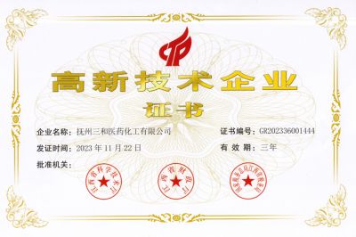 公司于2008年获得“国家高新技术企业”称号,并每三年“国家高新技术企业”复审,公司产品有列入国家重点产品,荣获过国家火炬计划,科技创新基金项目,江西省重点优秀产品,江西省科技进步奖,抚州市科技进步奖等殊荣。公司先后被评为“江西省先进非公有制企业”“江西省劳动保障AAA级企业”“抚州市优秀企业”“抚州市先进企业”“抚州市优秀科技企业”“宜黄重点企业”等。